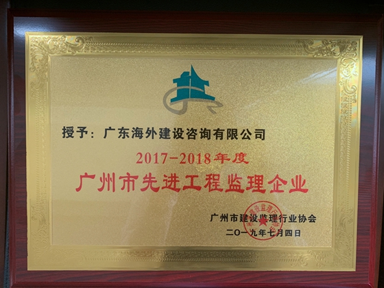 热烈庆祝我司荣获由广州市建设监理行业协会评定的2017-2018年度广州市先进工程监理企业